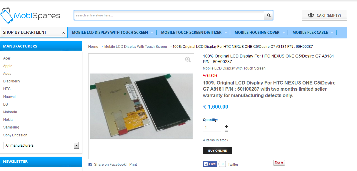 A need is born, a need to test an Embedded prototype project that takes in commands from an Android app over Bluetooth. Now, I can’t restrain myself any further. I call the eBay shop owner selling the screen and he says that I can get a better price if I visit his online store at http://mobispares.com.